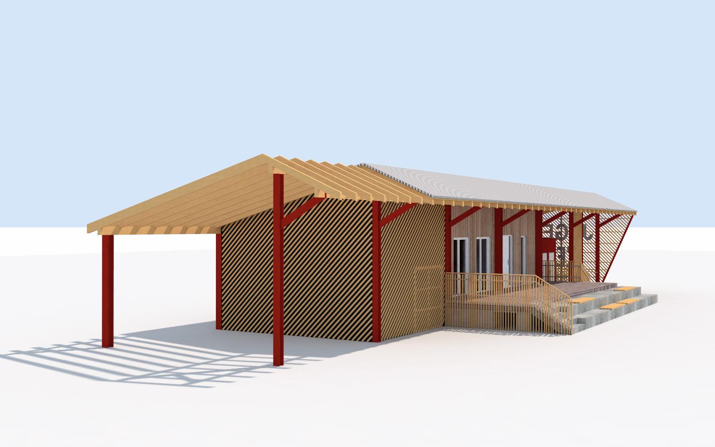 Das direkt neben der Sporthalle Langdell liegende ehemalige Tennisheim wird zu einem Jugendtreff / Jugendbüro mit WC-Anlage umgebaut und erweitert. In Verbindung mit einer vorhandenen Grillhütte wird ein Vorplatz als Treffpunkt und Begegnungsstätte gestaltet.